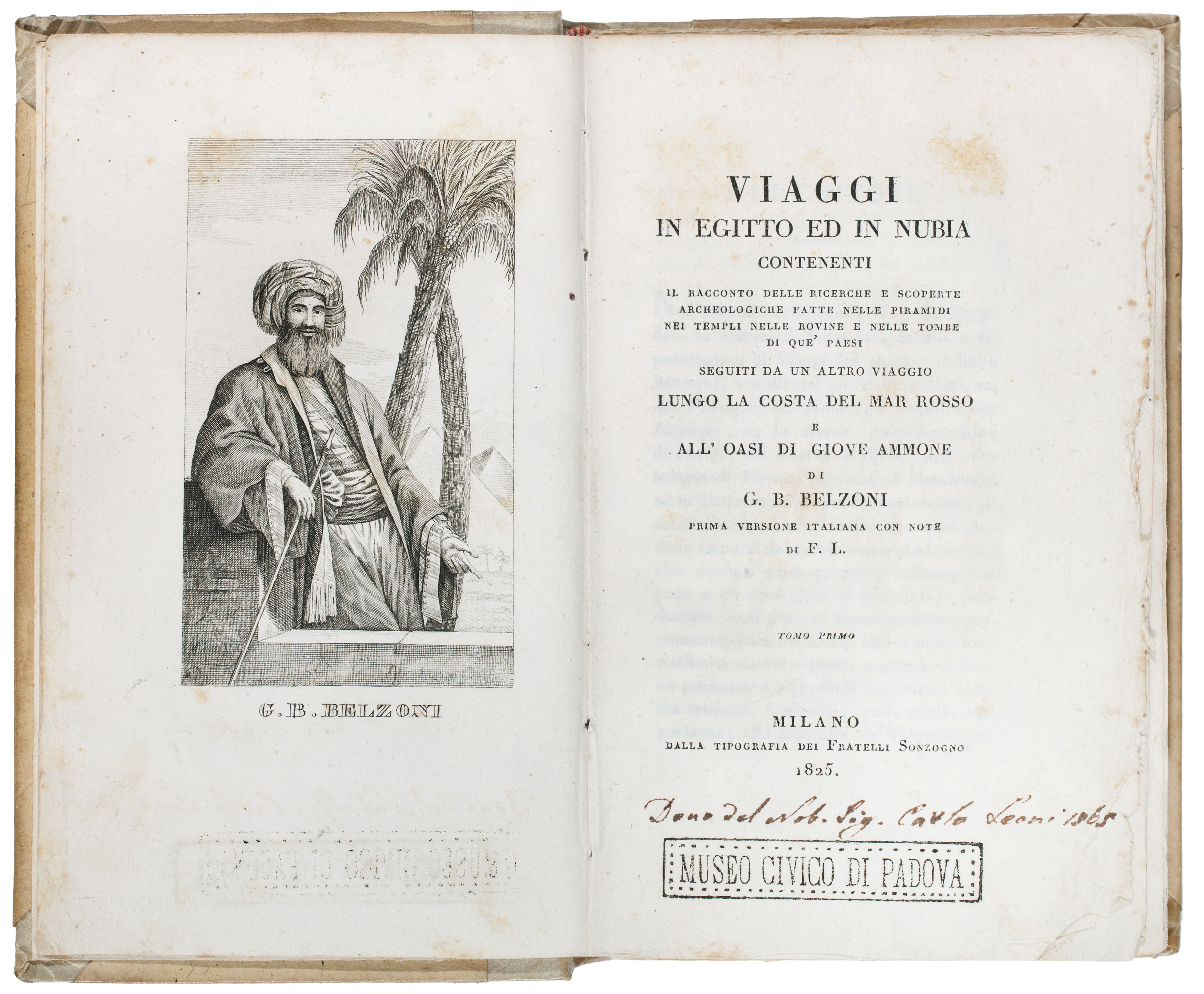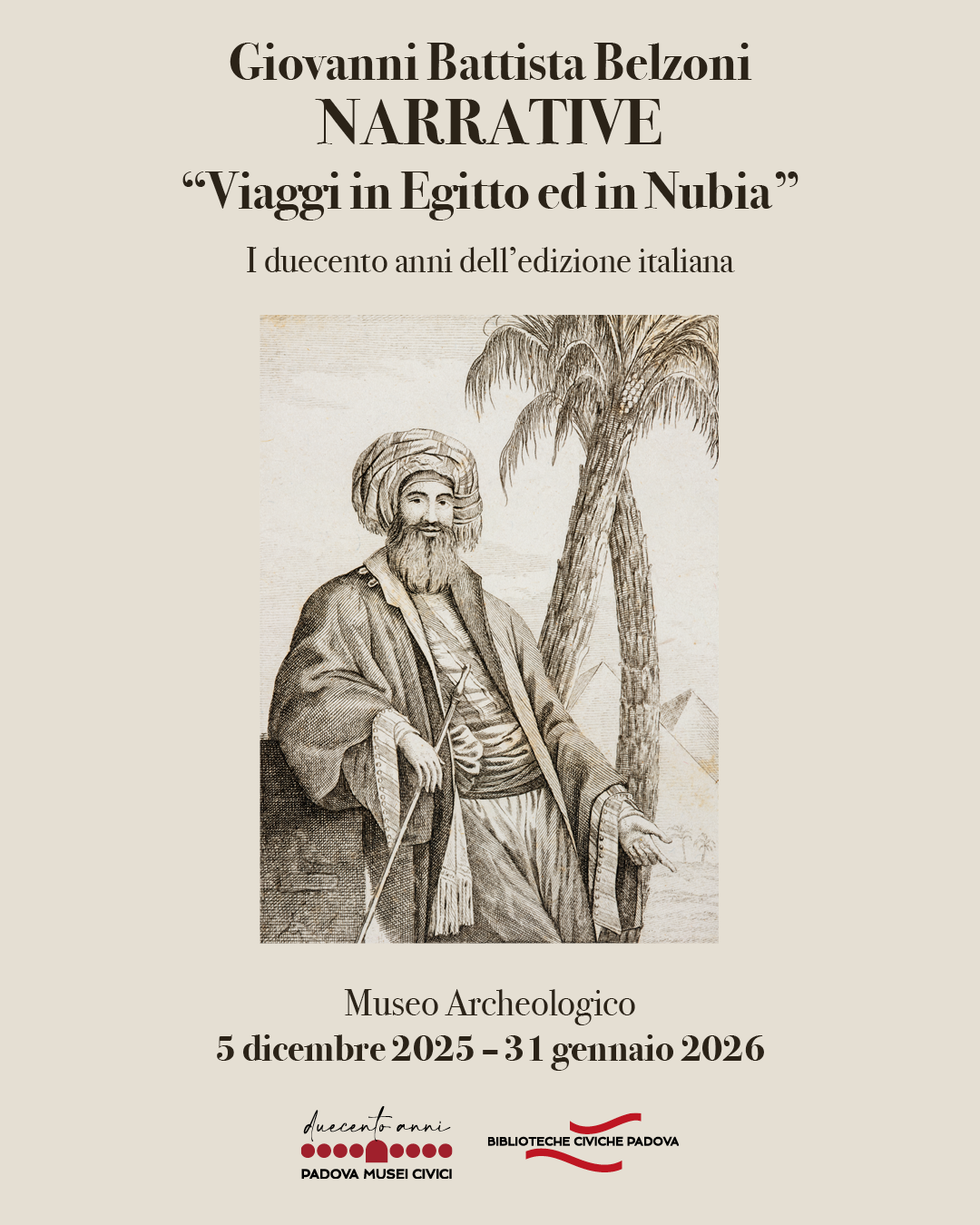 Nell’anno del bicentenario della nascita del Museo Civico, un altro bicentenario non può assolutamente passare inosservato: la pubblicazione in italiano del Narrative, il diario di viaggio in cui il padovano Giovanni Battista Belzoni, esploratore da molti considerato il padre dell’egittologia, raccontò la sua straordinaria avventura in Egitto tra il 1815 e il 1819.